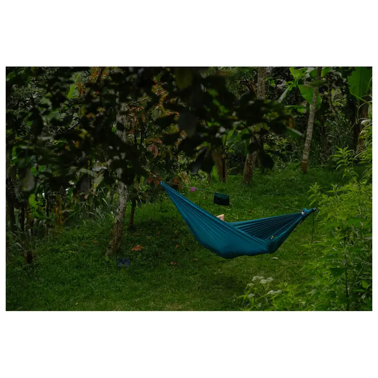 The Compact Hammock from Ticket To The Moon is designed to offer a lightweight, practical relaxation experience. Made from 70D parachute nylon, this Oeko-Tex-certified model combines comfort and durability. It features a seamless design and allows quick, intuitive installation, without the need for knots or screws. Weighing just 500 g, it’s easy to transport and store in its included bag. The integrated side pocket is ideal for keeping valuables close at hand. This hammock, capable of supporting up to 200 kilos, is a reliable option for your moments of outdoor relaxation.