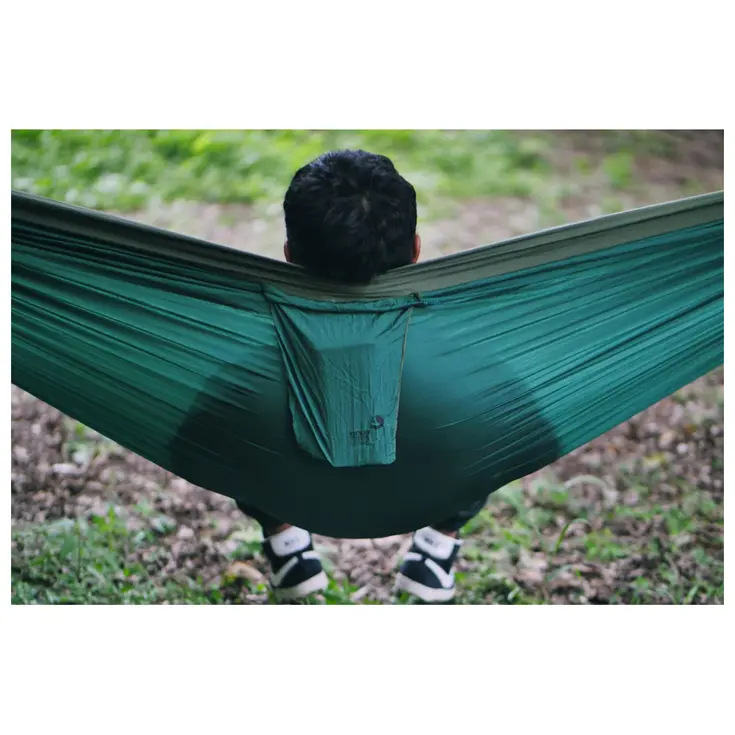 The Ticket To The Moon Original Hammock is a staple model that embodies versatility and lightness. Crafted from 70D parachute nylon, this hammock offers an intuitive and quick setup without the need for knots or screws. Its artisanal design is Oeko-Tex certified, ensuring environmentally friendly production. With generous dimensions of 320 x 200 cm and a weight of only 600 g, it is easily transported in its included stuff sack. The triple stitching ensures remarkable durability, while the side pocket keeps valuables within easy reach. This hammock is a reliable choice for outdoor relaxation.