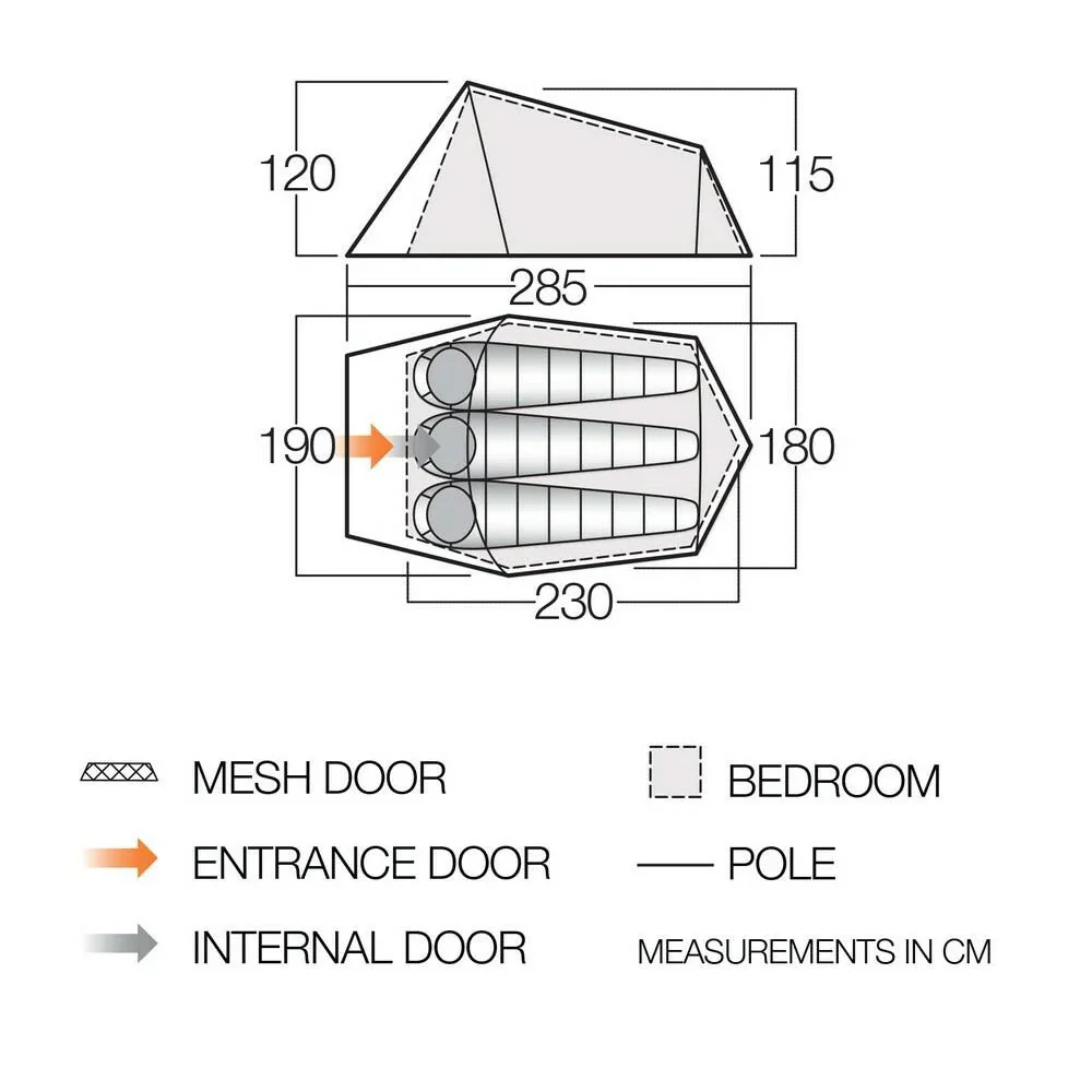 The tent’s inner tent is made from breathable polyester fabric and has a part-mesh design to provide ventilation and reduce condensation. The tent also features mesh panels on the inner tent doors and a small vent at the rear of the tent to further increase ventilation.